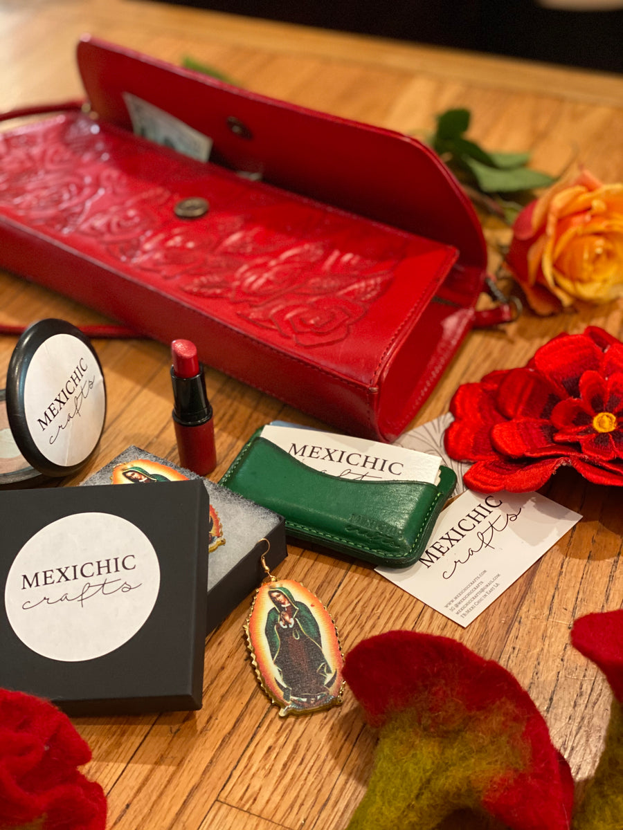 Diana Diaz was born and raised in East Los Angeles, and she is the daughter of Mexican immigrants that introduced her to the world of street vending and apparel construction. These intersectionalities inspired her to create Mexichic Crafts, the first luxury leather brand from East Los Angeles. This fashionista activista pays homage to her cultura with exclusive and colorful designs that inspire love and alegria.